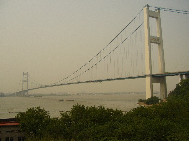 江陰長(zhǎng)江公路大橋是我國(guó)首座跨徑超千米的特大型鋼箱梁懸索橋梁,也是20世紀(jì)“中國(guó)第一、世界第四”大鋼箱梁懸索橋,是國(guó)家公路主骨架中同江至三亞國(guó)道主干線以及北京至上海國(guó)道主干線的跨江“咽喉”工程,是江蘇省境內(nèi)跨越長(zhǎng)江南北的第二座大橋。 江陰大橋無(wú)論從炮臺(tái)遠(yuǎn)觀還是從江邊近看,都非常雄偉壯觀,尤其是夜晚,在燈光籠罩下的江陰大橋,更是別有風(fēng)味。