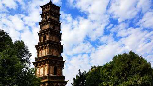 位于長(zhǎng)江之濱,九江市東北隅,傲然屹立,高聳藍(lán)天,瀟灑古樸,偉岸氣昂,塔影鎖江,風(fēng)雅微妙。塔高35 米,造就七層,六面錐狀,青磚砌身,石鑿拱頂,宛如撐天大柱突兀江畔。