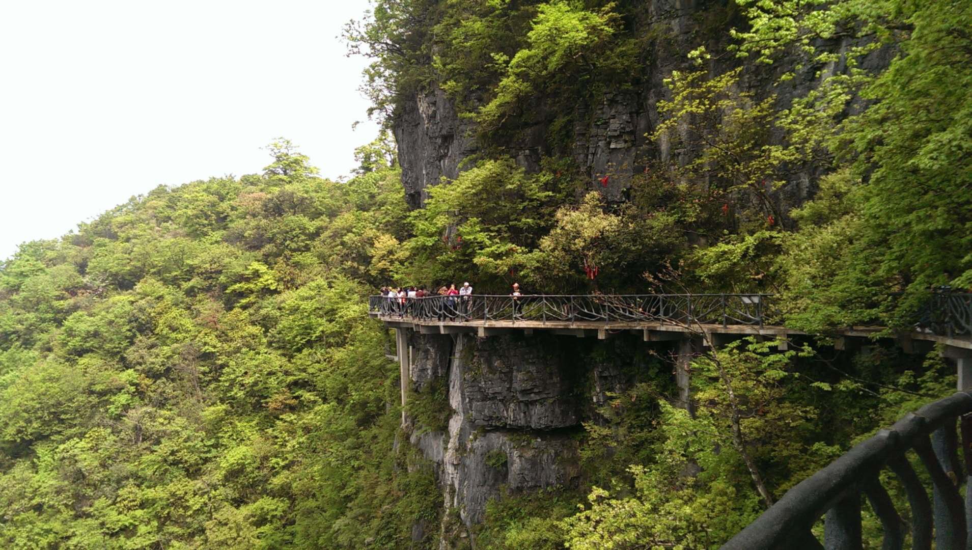 據(jù)施工人員介紹,此條棧道也是他們所修棧道中施工最難,最險峻的一條。如果您還覺得不夠刺激的話,在棧道的完結(jié)處的兩個懸崖之間有一條長160米的懸索吊橋,同時,在海拔最高點還有一個挑戰(zhàn)心里極限的玻璃站臺,在這里,如果你能挺直腰板伸開雙臂,那么,您就是真正的勇士了。