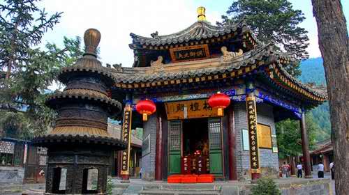 占地三千平方米,計有殿堂僧舍二十余間。過牌樓,進山門,見院內(nèi)的山門背后立有石碑兩塊:一塊立于明萬歷二十年仲秋,上書“五臺山重建佛頂庵碑記”;另一塊立于清康照歲次辛未仲秋,上書“青峰頂造像建亭記”??磥?,黛螺頂又名青峰頂,佛頂庵是黛螺頂寺宇的另一種稱法。寺內(nèi)的第一座殿為站壇殿,殿座六角臺基,上部是六角重檐攢尖頂。作為殿建,在五臺山寺廟群中別具一格。殿內(nèi)主供站壇佛,釋迦牟尼佛不是常見的趺坐形樣,而是站立于佛壇之上。又站壇佛亦稱旃檀佛,因原來的站佛是用旃檀木雕成,故名。第二座大殿為五文殊殿,正面三間,側面兩間,外加半間寬的四面出廊,單檐歇山頂。殿內(nèi)供的就是集五座臺頂五種文殊法像于一室的五文殊,正中殿壇上,中間供中臺孺童文殊,左側供北臺無垢文殊,右側供南臺智慧文殊,左側殿壇供東臺聰明文殊,右側殿壇供西臺獅子吼文殊。版權所有山東聊城聊之旅國際旅行社有限公司,轉載必究!自從黛螺頂供五文殊以來,小朝臺的盛譽聞名遐邇。大殿前立的石碑,就是清乾隆御制碑,石碑背面的乾隆親筆題詩,其字跡的結構豐滿圓潤,筆法剛勁流暢,堪稱書法藝術珍品。第三座后殿面闊五間,懸山_頂,殿階臺下長有一松一柏,松在北端,柏在南端,圍粗均在九尺左右,即是乾隆詩中所稱的“階下千年不老松”。松柏樹高大直立,無有彎曲,望去有如戟指藍天,為寺宇生色不少。