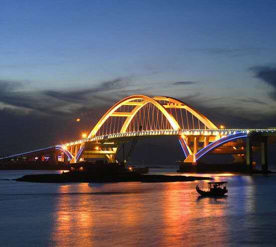 也是五緣灣開發(fā)的一個亮點。該橋型為繼云南小灣橋(主跨130米)和上海盧浦大橋(主跨550米)后,國內(nèi)第三座同類結(jié)構(gòu)橋梁。 2004年,五緣大橋正式通車,環(huán)島路43公里主干道全線貫通,廈門島網(wǎng)絡(luò)狀的公路交通最外圍的一圈道路完全合攏成形。05年5月份,五緣大橋的西邊另外4座拱橋全部建成,它們是環(huán)島干道跨五緣灣特大橋、環(huán)湖里大道跨五緣灣特大橋和一號人行橋與二號人行橋。