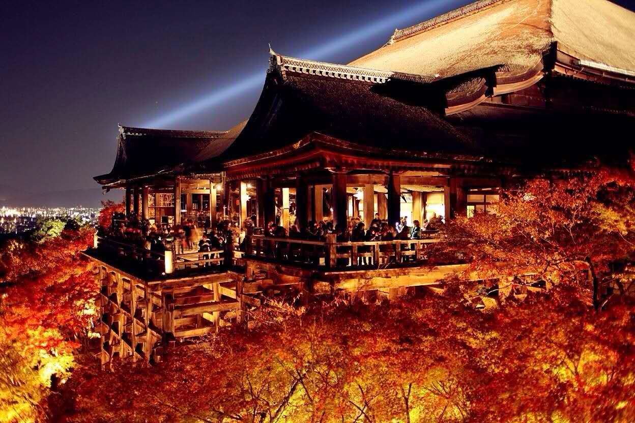 清水寺,一個(gè)來(lái)了京都必然要去的地方,春櫻秋楓,這里從來(lái)都是京都的熱門名所?;ㄒ?jiàn)小路上偶遇粉妝艷抹的京都藝伎,華麗的和服,嬌艷的頭飾,舒緩的舞姿,燈火下,是夢(mèng)幻一樣的溫柔凄美。穿過(guò)庭院,來(lái)到“清水大舞臺(tái)”,磅礴壯闊的京都秋色美景盡收眼底。清水寺外,二年坂、三年坂游人如織,熱鬧非凡。這,才是最地道的京都。