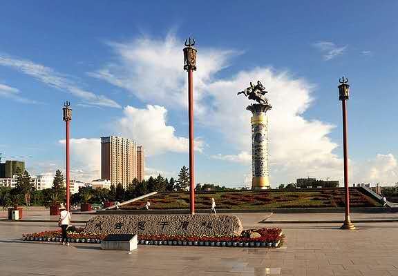 可在市區(qū)乘坐1路, 在市醫(yī)院站下車(chē),步行至成吉思汗廣場(chǎng)。