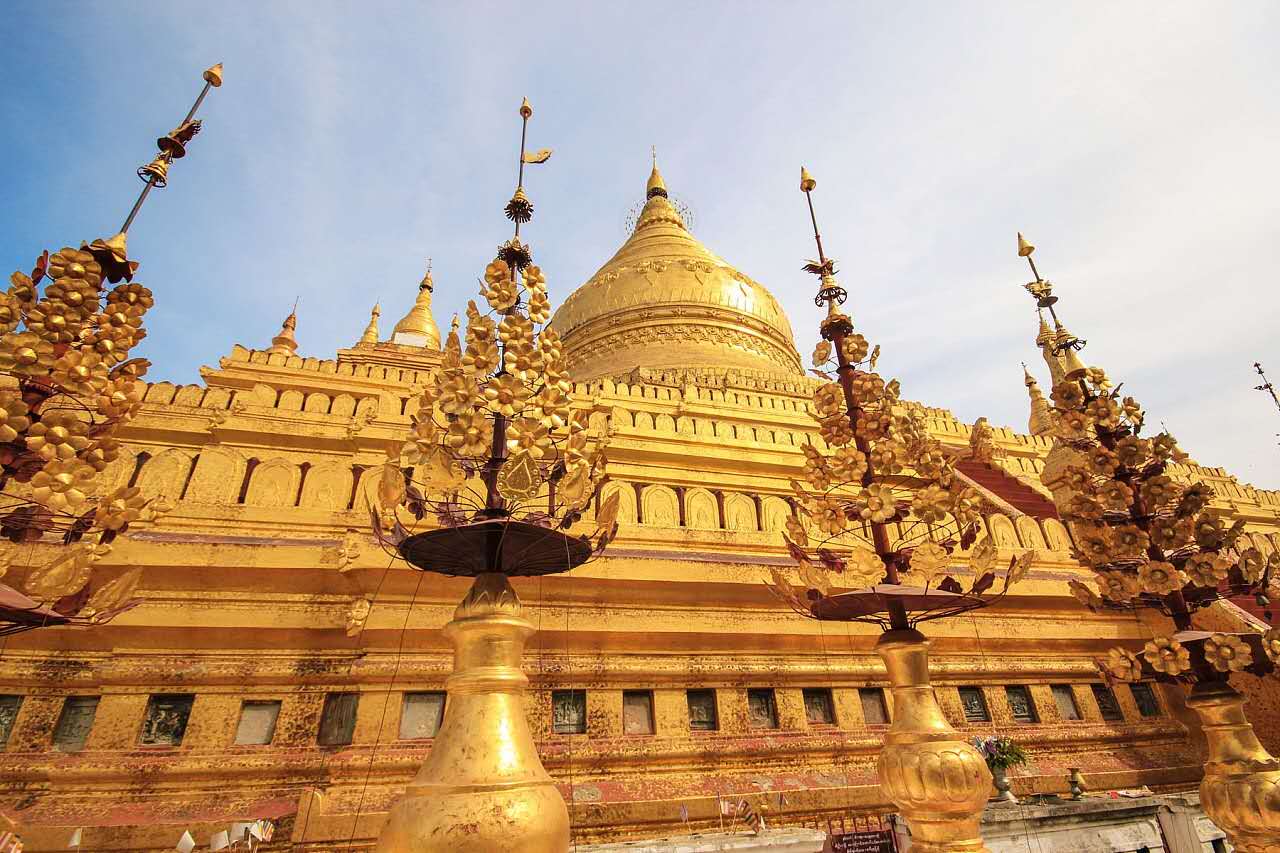 公元1059年,蒲甘王朝的阿奴律陀主持修建了瑞喜宮佛塔,當(dāng)時的瑞喜宮佛塔作為皇家佛塔修建。當(dāng)時,塔內(nèi)供應(yīng)佛的前額骨和佛齒??上У氖前⑴赏幼詈鬀]能看到佛塔的完工,他的兒子江喜陀王繼位后,繼續(xù)修建佛塔。版權(quán)所有山東聊城聊之旅國際旅行社有限公司,轉(zhuǎn)載必究!佛塔終于在公元1090年竣工。整座塔呈現(xiàn)了金鐘形,底座呈八角型,有三層四方形的塔基。整座佛塔精美絕倫,細(xì)致的雕刻和優(yōu)美的造型呈現(xiàn)出一種難以用言語表達(dá)的美感。在入口處立著獅子像,和瑞喜宮佛塔塔身一樣一樣,全身金光閃閃。