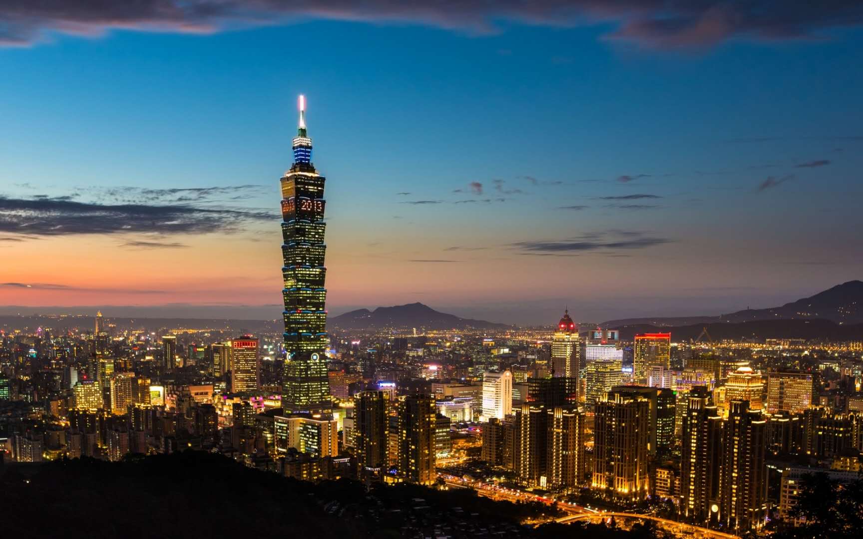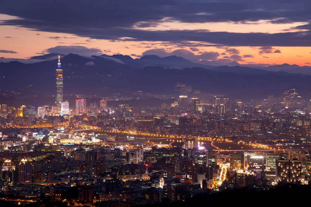 臺北市位于臺灣島北端,臺灣島北部的臺北盆地,四周均與新北市接壤,被新北市環(huán)繞,西界淡水河及其支流新店溪,東至南港附近,南至木柵以南丘陵區(qū),北包大屯山東南麓。東西寬處20.5公里,南北長約28公里。經(jīng)度東經(jīng)121.6度,緯度北緯24.9度。