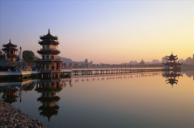 澄清湖位于高雄的鳥松鄉(xiāng),是高雄第一大湖,舊名“大埤湖”或“大貝湖”,媲美大陸的西湖,也是重要的水源地和風景區(qū)。梅隴春曉、曲橋釣月步入巍峨的觀光大門一眼就見到兩座紅色中國式宮殿建筑,左邊的是淡水館,右為海水館。
