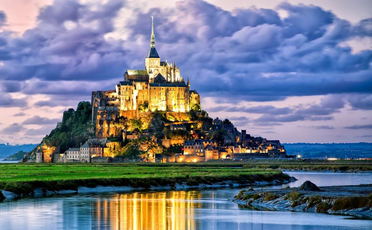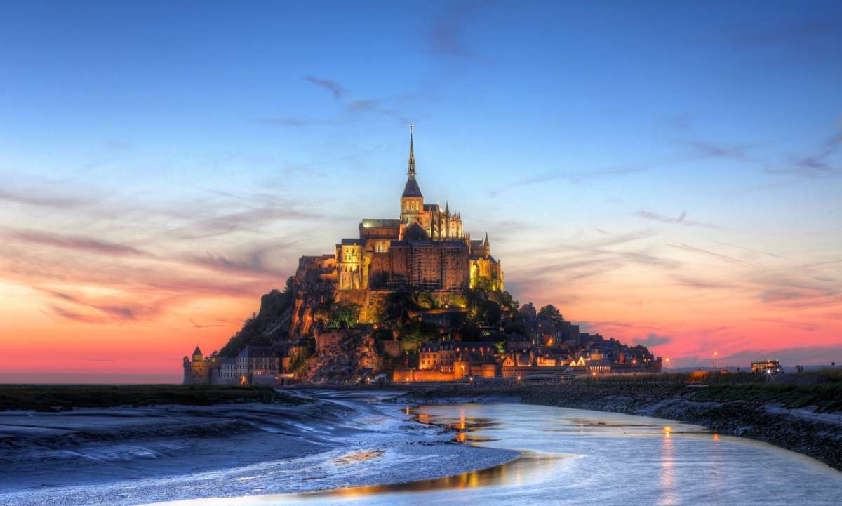 公元708年的一夜,在圣米歇爾山附近修行的紅衣主教奧貝,連續(xù)3天夢見天使米歇爾手指沙灘上的一座小山,示意他在此修建教堂。正是這場夢人們整整忙活了8個世紀,無數(shù)的教士和勞工們將一塊塊沉重的花岡巖運過流沙,一步步拉上山頂,造就了這個奇跡。