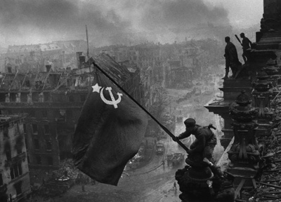 1945年4月30日下午2時半,紅軍戰(zhàn)士把紅旗插上德國國會大廈。就在此刻,法西斯頭子希特勒用手槍結(jié)束了罪惡一生。希特勒死后,德軍沒有馬上投降,爭奪國會大廈的戰(zhàn)斗依然在進行。5月1日,蘇軍向柏林市中心的德軍最后據(jù)點發(fā)起攻擊,先后攻下了德國空軍大廈、秘密警察總部大廈。直到5月2日下午3時,德軍才完全停止抵抗,柏林市防司令率殘部投降。5月8日,德國簽署了無條件投降書,歐洲戰(zhàn)場的戰(zhàn)爭宣告結(jié)束。