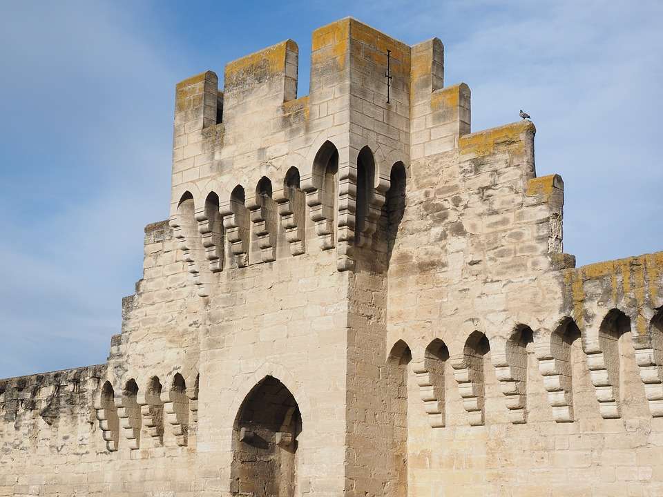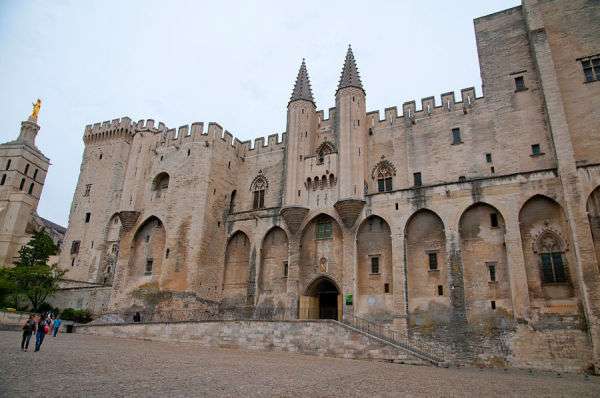 教皇宮(Palais des Papes) 由西蒙德 . 馬蒂尼和馬泰奧.焦瓦內(nèi)蒂設(shè)計裝飾的羅馬教主宮,看上去是非常古樸的城堡,它俯視著這座城市,環(huán)城的城墻和 12 世紀遺留下來的橫跨羅納河的橋梁。這座突出的哥特式建筑下面的廣場上,小宮殿和圣母院教士的羅馬主教堂構(gòu)成了一組特殊的紀念碑,他們顯示了阿維尼翁在 14 世紀基督化的歐洲所扮演的突出角色。