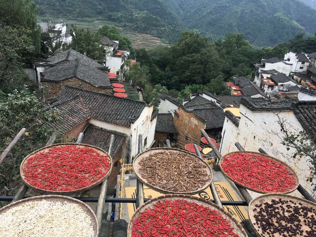 為慶祝首個(gè)“中國(guó)農(nóng)民豐收節(jié)”,篁嶺家家戶戶房前屋后晾曬的農(nóng)作物,將篁嶺古村裝扮。 古村內(nèi)有鄉(xiāng)村美食、農(nóng)耕體驗(yàn)等系列活動(dòng),打麻糍、磨辣椒、做月餅,游客與農(nóng)民一起慶豐收、曬豐收、享豐收。