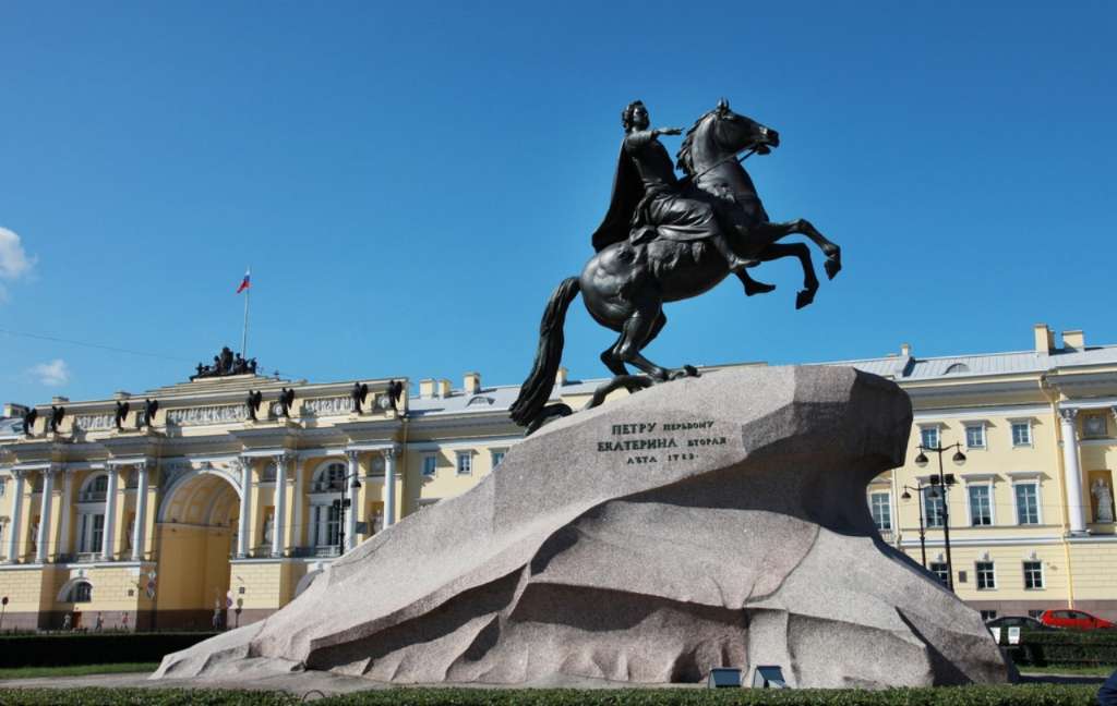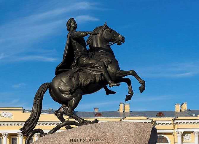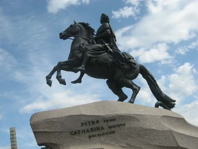 銅像的底座是40噸重的一整塊花崗石,是在圣彼得堡芬蘭灣處找到的,用了5個月的時間運到這里,在花崗石上面刻著“葉卡捷林娜二世紀念彼得大帝一世于1782年8月”。版權所有山東聊城聊之旅國際旅行社有限公司,轉載必究!現(xiàn)在大家看到的彼得大帝所騎的馬代表俄羅斯,它雙腳騰空,好像要沖破一切阻力勇往直前,在馬掌下有一個踏死的大蛇,它代表了一切阻止彼得大帝改革維新的守舊派,正如雕塑展示的一樣,彼得大帝沖破了重重阻力,在這片沼澤地建起了這座美麗的城市圣彼得堡,并建都于此,把落后、封建、貧窮的俄羅斯,帶向了海洋與繁榮。