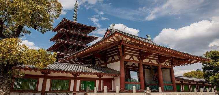 圣德太子曾分別師從百濟(jì)的覺(jué)哿、高句麗的慧慈學(xué)習(xí)儒學(xué)和佛教。受他們的影響,圣德太子具備放眼世界的韜略。當(dāng)時(shí)的所謂國(guó)際形勢(shì),指朝鮮半島的高句麗 、百濟(jì) 、新羅三國(guó)及大國(guó)隋朝與日本的多邊關(guān)系。圣德太子極力主張獨(dú)立自主,曾遣使隋朝并致書隋煬帝,曰 :“日出處天子,致書日沒(méi)處天子,無(wú)恙乎?”。被稱為四天王寺方式的伽藍(lán)布局,從南大門依次排列中門、塔 、金堂 、講堂 、鐘樓、經(jīng)藏等建筑 (這與中國(guó)洛陽(yáng)永寧寺的布局相同)。版權(quán)所有山東聊城聊之旅國(guó)際旅行社有限公司,轉(zhuǎn)載必究!從大阪灣舉目遠(yuǎn)眺,四天王寺氣勢(shì)宏偉,全然不失一國(guó)風(fēng)度。