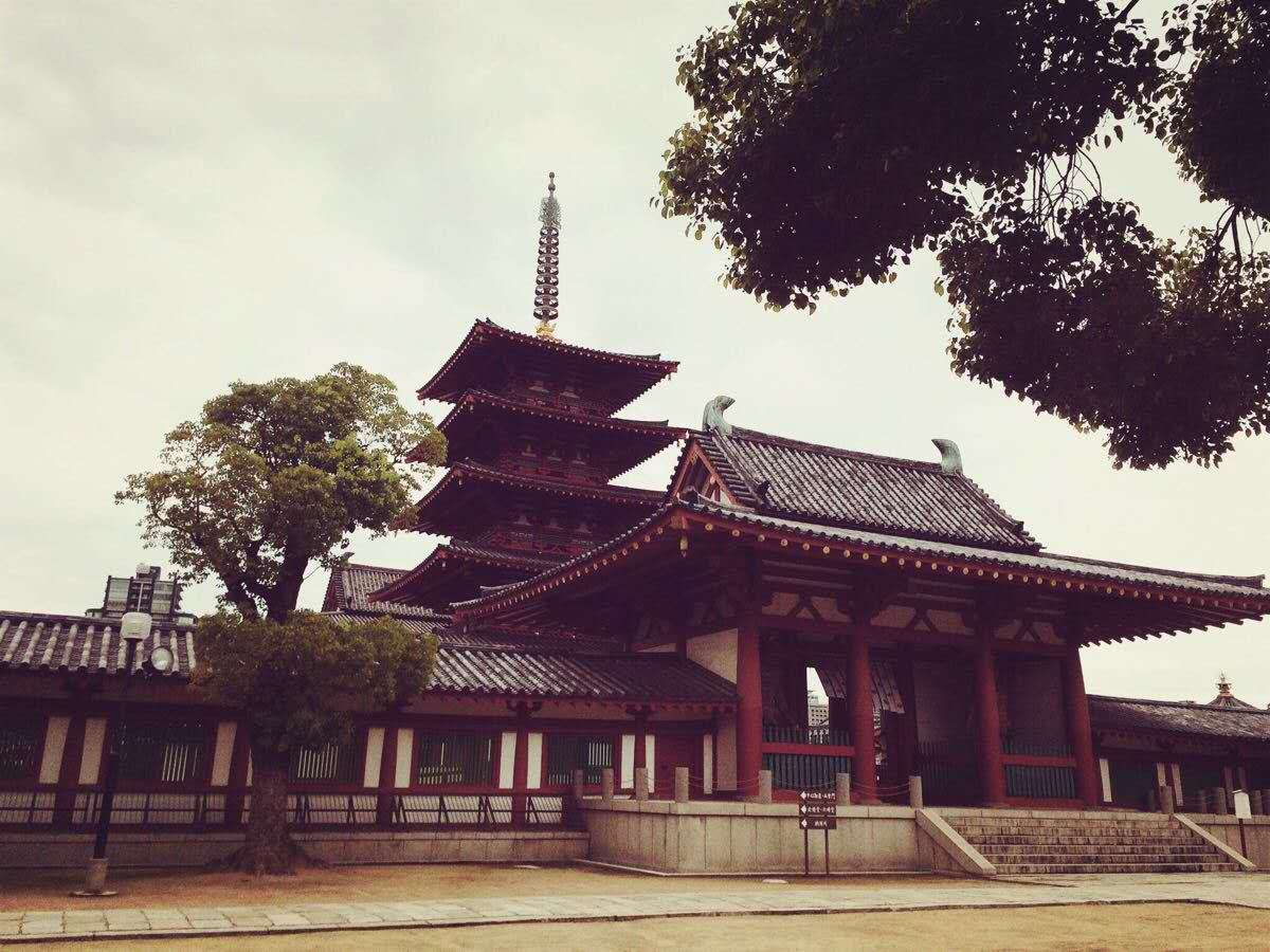 四天王寺是593年由圣德太子所建立的日本佛教最早的寺院,因此它也是日本最古老的官家寺院。它不僅僅作為佛界守護(hù)、鎮(zhèn)護(hù)國(guó)家的寺院而成為政治外交的中樞,而且還是美術(shù)工藝產(chǎn)業(yè)等日本文化的發(fā)源地。以后將中門、五重塔、金堂、講堂等呈一條直線排列、外部則由回廊環(huán)繞的建筑模式稱為“四天王寺式”,其模式來(lái)源應(yīng)為中國(guó)和朝鮮半島。雖然殿堂、寶塔、寺院多次遭遇戰(zhàn)炎和天災(zāi)和毀壞,但每次都得以重建,所以至今仍保持著最初建造時(shí)的飛鳥時(shí)代的雄姿,充分體現(xiàn)了這座寺廟的悠久歷史和它在大阪人心中的地位。