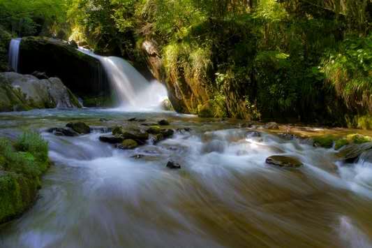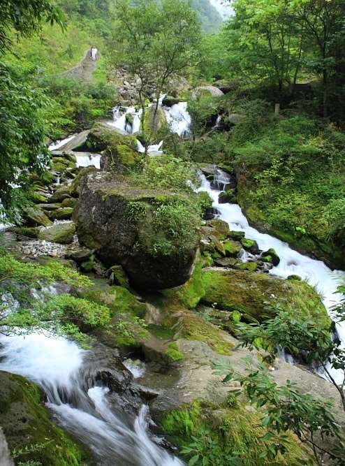 跳架溝位于金猴嶺以東,由鄭家包北西500米處暗河泉流形居,泉流在溝腦一深潭中涌出,清亮碧綠,穿林越谷瀉入木魚(yú)河,它是香溪的主要源頭。這里水質(zhì)純凈,含人體所需多種微量元素,飲用甘涼。香溪源景區(qū)北距木魚(yú)鎮(zhèn)4公里。香溪源是長(zhǎng)江西陵峽北岸的一條重要支流,它是一條地下河,發(fā)源于海拔2800米的風(fēng)景埡。香溪源東源出于龍口河、長(zhǎng)方河,流長(zhǎng)45公里,匯入興山縣東河后注入香溪;西源出于木魚(yú)河、當(dāng)陽(yáng)河、九沖河、流長(zhǎng)68.5公里,匯入興山西河后注入香溪。此處香溪源指的是西源,它源于木魚(yú)河中上游西岸的跳架溝。跳架溝位于金猴嶺以東,由鄭家包北西500米處暗河泉流形居,泉流在溝腦一深潭中涌出,清亮碧綠,穿林越谷瀉入木魚(yú)河,它是香溪的主要源頭。這里水質(zhì)純凈,含人體所需多種微量元素,飲用甘涼。