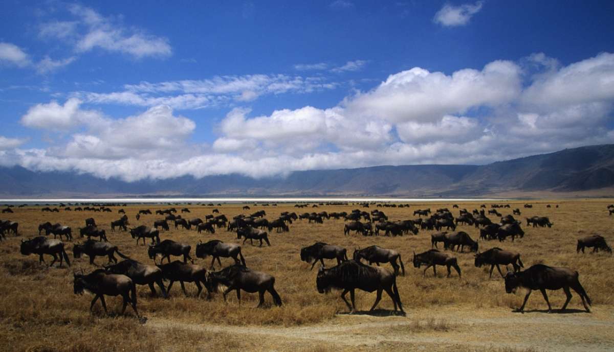 這里是非洲野生動物最集中的地方,在火山口內(nèi)260平方公里地面上,估計約有30000只動物,其中有50多種大型哺乳動物,包括獅子、大象、犀牛、河馬、長頸鹿、猴子、狒狒、疣豬、鬣狗及各種羚羊:200多種鳥,包括鴕鳥、野鴨、珍珠雞等。該火山口是整個東非野生動物世界的縮影。