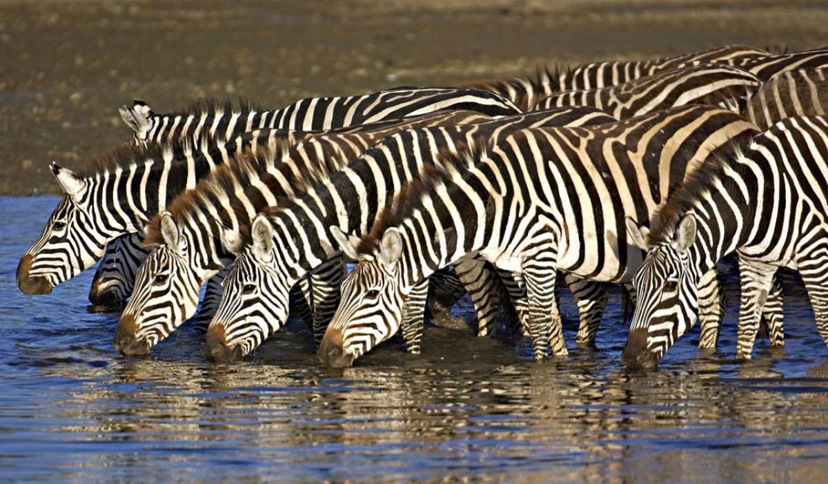 每年五六月間,龐大的斑馬群和花斑牛羚群匯聚在塞倫蓋蒂高原,六七匹一排橫立,準備開始行程500公里的向西遷徙。恩戈羅恩戈羅自然保護區(qū)的這一壯觀景象舉世罕見。
