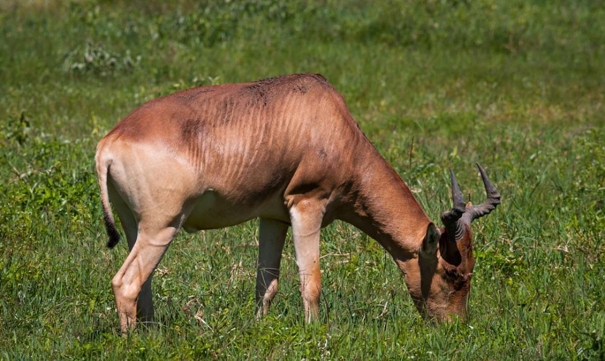 吃草的斑馬、角馬和瞪羚主要依賴草原,同時成為獅、獵豹、鬣狗、豺狼等的食物。這些食肉獸在食草動物群附近徘徊,像公路上的攔路劫匪,等待著狙擊離群的動物。食草動物大多在一、二月間青草最綠時生育,食肉動物也同樣在此期間繁殖,以便捕捉大量食草動物幼崽供哺乳的母獸和斷奶后的幼獸食用。所以火山口內(nèi)并非想像中的樂園。角馬群一見徘徊的獅子就引起騷動,瞪羚受驚就跳躍逃生,斑馬在角馬群中吃草很顯眼,但它們移動或在熱霾中吃草時,身上斑紋會與周圍環(huán)境渾然一體(見附圖)?;鹕娇趦?nèi)有15000只角馬,大部分會全年聚成大群一起生活。群居保安全!離群的角馬會成為食肉獸的獵物。