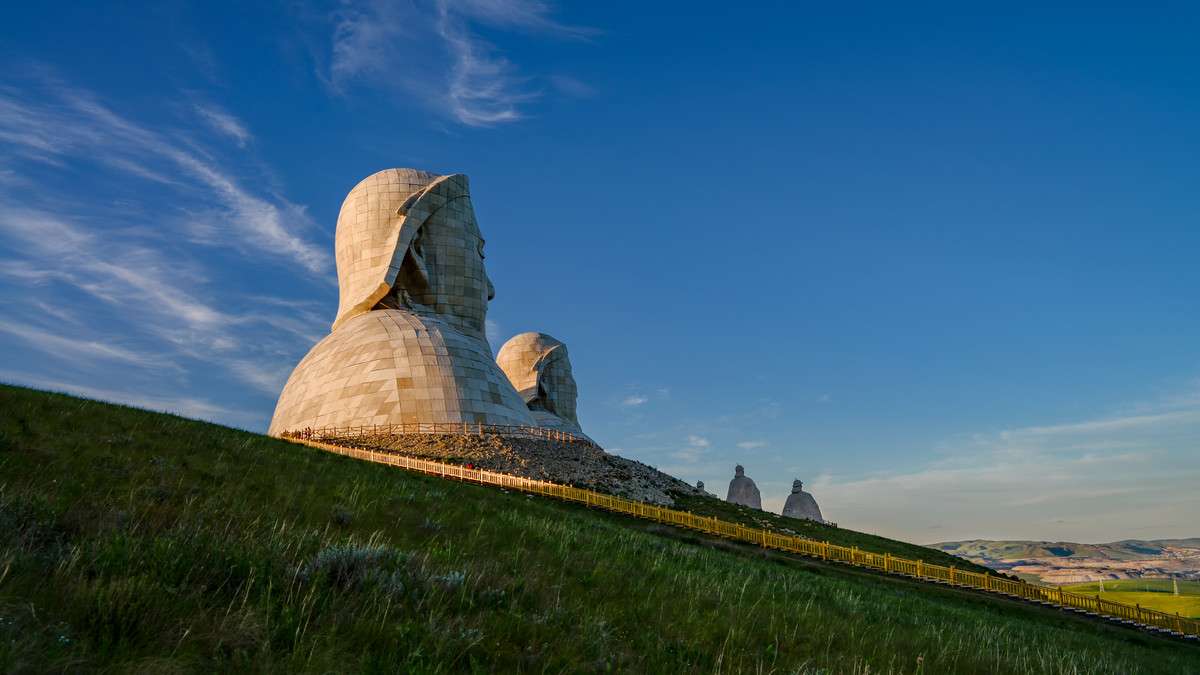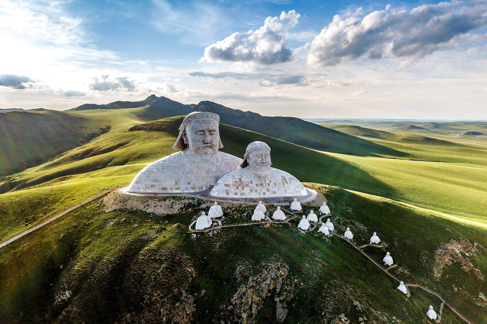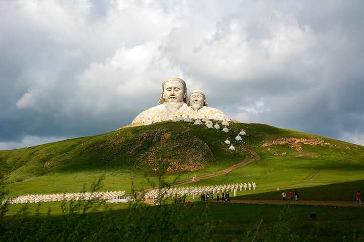 霍林郭勒市可汗山景區(qū)總投資5200萬元,占地面積13000余平方米,景區(qū)由山門、蒼狼之路、蒙元兵陣和蒙古帝王群四部分構(gòu)成,其中成吉思汗頭像雕塑高達(dá)50米。