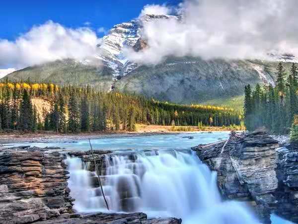 弓河瀑布(Bow River Fall)位于風(fēng)景秀麗的弓河(Bow River)之上,河水沿著班夫北面的山勢(shì)而來,在市區(qū)繞過一個(gè)弧度再往北而去,形狀就像一張弓,因此而得名。