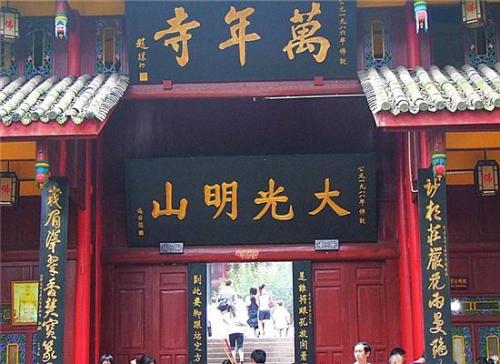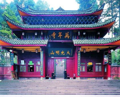 萬年寺,位于四川省峨眉山,由山麓報國寺上行約15公里,踞觀心嶺下,門迎大坪、牛心等寺和石筍、缽孟諸峰,海拔1020米,為峨眉山主要寺廟之一,全國重點寺院之一。