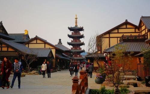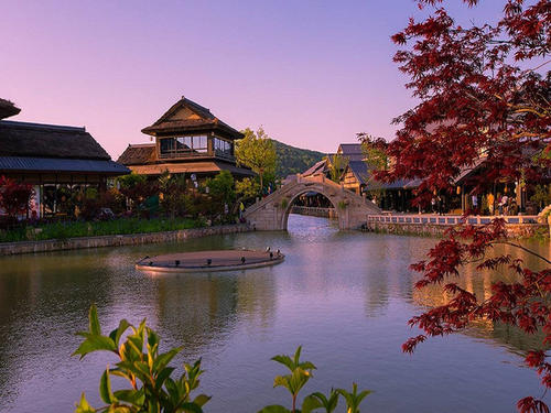 行走其中,木制的唐風(fēng)建筑與橋梁,讓清雅禪意撲面而來,街道兩旁所有的建筑、景觀都像是會呼吸般的渾然天成,使人感到如同進(jìn)入一個充滿禪意的世界中。