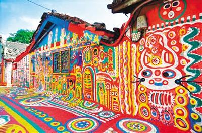 旅游傳奇景點「彩虹眷村」,起源于住在臺灣臺中市南屯區(qū)嶺東科技大學(xué)附近有一處舊眷村的八十七歲老榮民黃永阜,因為「無聊」而拿起畫筆彩將眷村內(nèi)的巷弄街道當成了天然的畫布,在上頭彩繪了各式美麗的彩虹線條與可愛動物,不僅染亮了小村,在網(wǎng)絡(luò)上引起熱烈討論,更形成一股參訪風(fēng)潮。因他的用色大膽,構(gòu)圖可愛并充滿童趣,讓到訪者有如置身彩虹世界,故網(wǎng)友稱此處為「彩虹眷村」。