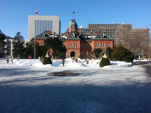 有札幌心臟之稱的大通公園是長(zhǎng)約 1.5公里,寬約100米的帶狀綠地。有草地、花壇、噴水池等,是市民們休息的場(chǎng)所。在冬季顯得特別美麗,銀白色的雪地里滿是裝飾得五光十色的樹木,夜晚也明亮如晝。