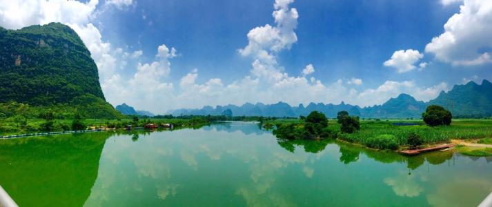 兩岸樹木蔥郁,水至清,多跌水,沿河是玲瓏的石岸,岸邊的稻田、竹叢、果樹、農(nóng)舍掩映,儼然如桃源仙境。那榜田園風(fēng)光:那里河水蜿蜒,水面如鏡,倒影遠(yuǎn)方兩座單斜山峰,岸邊田園平鋪。田間小路、果林、農(nóng)舍似錦似畫,妙不可言。該景區(qū)自從1999年開放接待游客后,購進(jìn)了機(jī)動(dòng)游船等交通游覽設(shè)施,以水上游覽為主要休閑、娛樂項(xiàng)目。