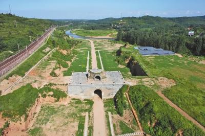 建筑無存。據考證函谷關關城為不規(guī)則長方形,用長、圓、平夯夯打而成。東城墻長1800米,西城墻長1300米,南城墻長180多米。遺址基本與史書記載相吻合。