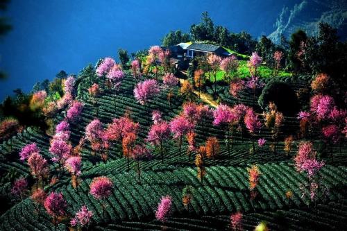 南澗縣無(wú)量山櫻花谷,在無(wú)量山國(guó)家級(jí)自然保護(hù)區(qū)周邊,與靈寶山國(guó)家森林公園相鄰,距離縣城51公里。北緯24°45' 50" 東經(jīng) 100°30' 32" ,海拔2175米。每年11月底至12月,間植在茶園中的冬櫻花競(jìng)相開(kāi)放,構(gòu)成一幅無(wú)量山櫻花谷人間仙境。櫻花谷面積約2000畝,成三片分布。櫻花谷免費(fèi)為游客開(kāi)放,不收費(fèi),景區(qū)配備有觀景臺(tái),衛(wèi)生間、餐飲、住宿等設(shè)施,是集觀光、旅游、攝影為一體的旅游景區(qū),是攝影愛(ài)好者的天堂。