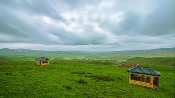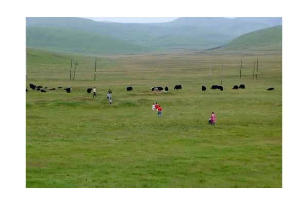 甘加草原周圍群山環(huán)繞,是一處典型的高原草地,理想的天然牧場。每到夏季,整個草原碧綠如茵,好似一塊天然的綠色大地毯,鮮花盛開,繁花似錦。藍天、白云、綠草渾然一體,央曲河和央拉河蜿轉流淌,猶如一條潔白的哈達飄落在草原上。