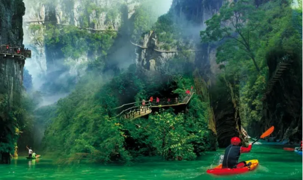 地心探秘,訪古問今。恩施地心谷屬珍奇高山喀斯特巖溶嶂谷地貌,鬼斧神工的景區(qū)地質(zhì)奇觀形成于2.5億年前三疊紀(jì),其巖溶嶂谷區(qū)以長、深聞名于世;215萬年前的“建始直立人遺址”,挑戰(zhàn)著世界非洲人類起源的學(xué)說;擁有4000年輝煌歷史的中華文明“巴鹽古道”,被《中國國家地理》譽為中國第五大古道,完整地保留著先秦以來“巴蜀咽喉”純原生態(tài)風(fēng)貌。