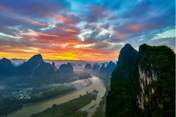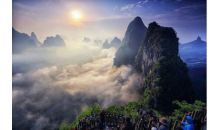 相公山位于陽朔縣興坪鎮(zhèn)內(nèi),距陽朔約28公里,距桂林約57公里。登上相公山舉目遠眺,群峰排列有序,蜿蜒流淌的漓江甚是美妙。這里的云海、日出、光影、彩霞吸引著無數(shù)攝影愛好者和攝影家。前往相公山有陸、水兩條路可行,可以從陽朔或者桂林到葡萄或白沙下車后再租車直接到達山腳下,也可從陽朔直接租車或自駕車經(jīng)白沙往右朝古板方向走到達拍攝地。水路從興坪租船經(jīng)過黃布灘到達山腳下,在步行上山。登相公山一般都要再天亮前爬到山頂,拍攝日出、云海、彩霞