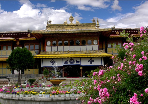 1922年,十三世達賴對羅布林卡再興土木,在園林西側(cè)建金色頗章宮、格桑德吉宮、其美曲吉宮,在西南建金色林卡,并種植大量花草樹木。