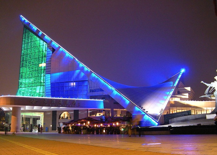 星海音樂廳位于廣州二沙島,造型奇特的外觀,富于現(xiàn)代感,尤如江邊欲飛的一只天鵝,與藍天碧水渾然一體,形成一道瑰麗的風(fēng)景線。這座以人民音樂家冼星海的名字命名的音樂廳,占地1.4萬平方米,建筑面積1. 8萬平方米,設(shè)有1500座位的交響樂演奏大廳、460座位的室內(nèi)樂演奏廳,100 座位的視聽欣賞室,和4800平方米的音樂文化廣場。整體建筑為雙曲拋物面鋼筋混凝土殼體,室內(nèi)不吊天花板,做到建筑空間與聲學(xué)空間融為一體。星海音樂廳總投資達2.5億元,是我國目前規(guī)模最大,設(shè)備最先進,功能完備,具有國際水平的音樂廳。