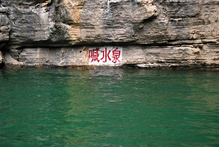 秦王峽東岸有一溶洞,相傳明代有一位姓秦的人,尊皇命于此熬硝監(jiān)制炸藥有功,朝廷封其為秦王,洞遂名“秦王洞”,峽亦名“秦王峽”。峽內(nèi)岸壁陡峭而水流較平緩,千米長灘,筆直一線。仰望,兩岸山峰高聳,猶似要合抱一般,氣魄十分雄偉;俯看,河水清澈如鏡,偶有魚群游過,引人競相捕捉,激起層層水花,于陽光下燦燦閃耀。