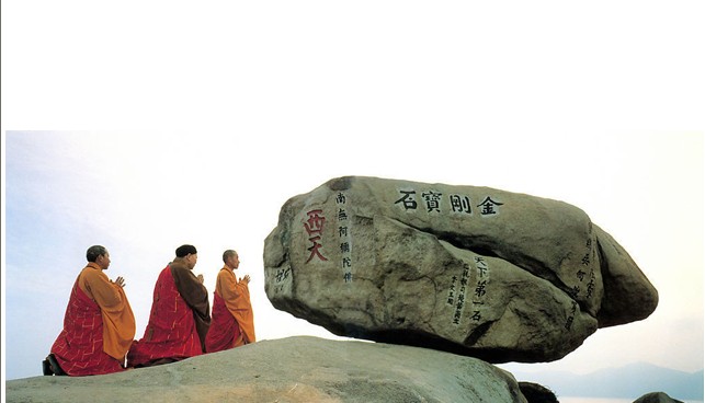 慧濟(jì)禪寺建于佛頂山上,又名佛頂山寺。普陀山奇巖怪石很多。著名的有磐陀石、 二龜聽法石、海天佛國石等二十余處。在山海相接之處有許多石洞勝景,最著名的是潮音洞和梵音洞。島的四周有許多沙灘,但主要的是百步沙和千步沙。千步沙是一個(gè)弧形沙灘,長(zhǎng)約3里,沙細(xì)坡緩,沙面寬坦柔軟,是一個(gè)優(yōu)良的海水浴場(chǎng)。夏天去游覽,可帶上游泳衣在這里暢游。
