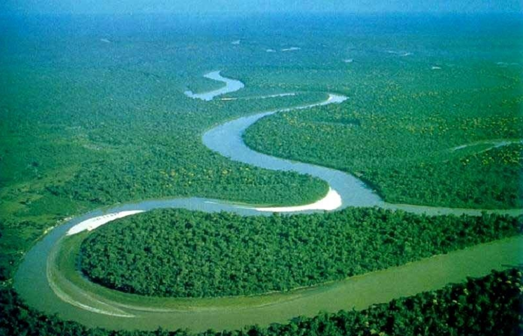 亞馬孫河自西向東流,沿途接納了源自安第斯山脈東坡、圭亞那高原南坡、巴西高原西部與北部的河流1000多條,形成龐大的亞馬孫河水系網(wǎng),其中7條長度超過1600公里,20條超過1000公里。其中長度超過1500km的支流有17條,如左岸的普圖馬約(Putu-mayo)河、雅背拉(Japura)河、內(nèi)格羅(Negro)河;右岸的茹魯阿(Jurua)河、普魯斯(Purus)河、馬代拉河、塔帕若斯(Tapajos)河、欣古(Xingu)河等,這些支流伸入到玻利維亞、哥倫比亞、厄瓜多爾、委內(nèi)瑞拉以及圭亞那等國。
