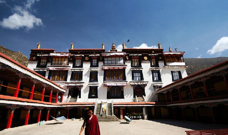 甘丹頗章,該殿是達賴嘛嘛在哲蚌寺的寢宮。在重建布達拉宮以前,五世達賴喇嘛一直住在這里,并在那一時期執(zhí)掌了西藏的政教大權(quán),甘丹頗章也就成了西藏地方政府的同義語,史學界故稱其為“甘丹頗章政權(quán)”。甘丹頗章系哲蚌寺第十任堪布、即第二世達賴喇嘛根敦嘉措于公元1530年時興建,宮室共7層,分前、中、后三幢建筑。前院系地下室的各類倉庫。二層院落面積達400多平方米,四周皆為僧舍游廊。達賴喇嘛生活起居主要在7樓,設有經(jīng)堂、臥室、講經(jīng)堂、客廳等。