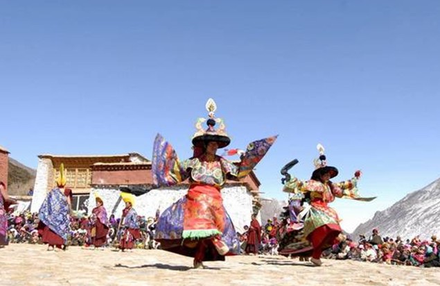 作為藏北重要的旅游勝地,熱振寺還有一些非同一般的“看點(diǎn)”,不可錯(cuò)過(guò)。如每年藏歷4月15日的“迎鳥(niǎo)節(jié)”和7月15日的“帕邦唐廓節(jié)”。“帕邦唐廓節(jié)”最初只是純宗教性的轉(zhuǎn)經(jīng)活動(dòng),后來(lái)逐漸發(fā)展成為除宗教活動(dòng)外,農(nóng)牧民進(jìn)行各類商品交換,開(kāi)展文娛活動(dòng)的綜合性節(jié)日。“迎鳥(niǎo)節(jié)”是根據(jù)熱振寺當(dāng)?shù)氐臍夂驐l件決定的,每當(dāng)舉行杜鵑鳥(niǎo)供奉日時(shí),僧人達(dá)百余人,敬獻(xiàn)供品若干,并且還要舉行隆重跳神活動(dòng),以求賜福。