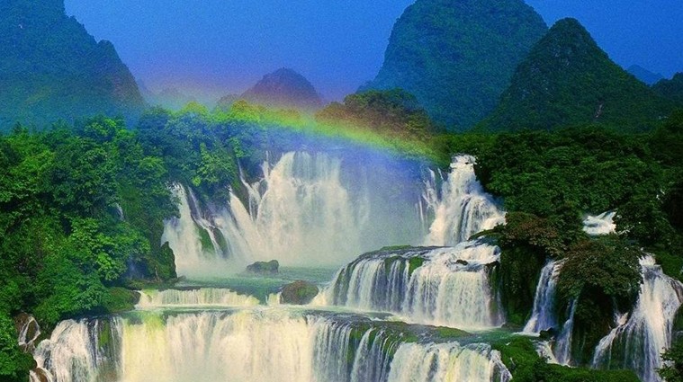凌空而瀉的瀑布,象銀河倒懸,墜至半空,忽被峭石攔腰斬?cái)?,剎時(shí)雪浪飛濺,宛如千萬串?dāng)嗑€的珍珠,紛紛揚(yáng)揚(yáng),沿懸立千紉的絕壁陡然下墜,落進(jìn)不見底的深淵,發(fā)出驚天動(dòng)地的狂嘯。而河水卻象兇猛的野獸在咆哮,發(fā)出震耳欲聾的吼聲,仿佛整個(gè)峽谷在顫動(dòng)。每到日落西山,“老虎嘴”彩虹繚繞,雪峰頂上緋紅一片,迷離變幻,奇勝不可名狀。