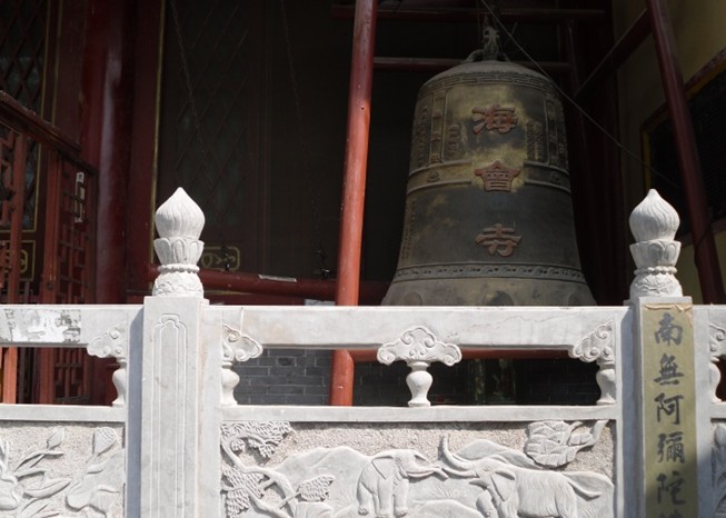 山門三間,額匾上書“海會寺”。山門東西各有旁門,山門內(nèi)兩旁立有哼哈二將,像高1丈5尺。