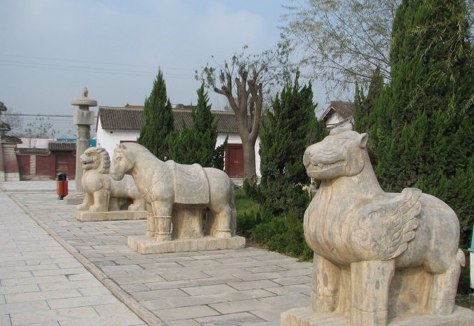 曹植(公元192~232年)字子建,“建安七子”之一,他所作的《七步詩》至今仍為世人廣為傳誦。曹植墓始建于魏太和七年(公元233年),1981年和1985年曾先后進(jìn)行過修葺。墓冢依山而建,以磚石磊筑而成,占地面積約1200余畝。墓室為前堂后室的磚室墓,前堂面積約17平方米,后室面積約4平方米。墓壁均以青磚錯縫平砌而成。前堂后室之間辟有門,并以磚封護。墓內(nèi)發(fā)現(xiàn)有石圭、石璧、青玉璜、瑪瑙泡、云母片以及陶器等隨葬品共132件。
