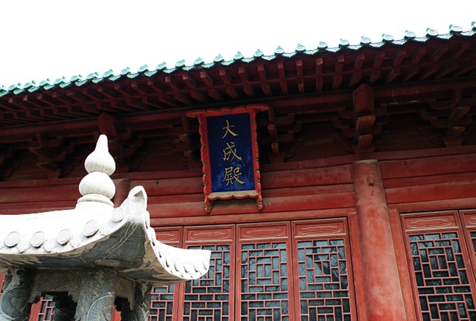 莘縣文廟始建于明洪武三年,系舊時(shí)祭祀孔子的場所。文廟原由欞星門、大成殿、啟圣祠、明記堂、敬亭、名宦鄉(xiāng)賢二祠等組成,現(xiàn)僅存大成殿。文廟占地面積2439平方米,大成殿建臺基上,面闊五間,東西闊19米;進(jìn)深三間,南北長11.8米 ,單檐歇山頂。殿內(nèi)的檐柱、前金柱、后金柱的直徑均很碩大,金柱高4.4米 ,前后金柱上擱置著七架梁、五架梁、三架梁。殿內(nèi)的脊檁枋下釘一塊木板,木板上有題記:“ 大明弘治十二年歲次己未秋七月吉旦提調(diào)官知縣孟□門主□桂……”。版權(quán)所有山東聊城聊之旅國際旅行社有限公司,轉(zhuǎn)載必究!在殿內(nèi)前上金檁枋下釘?shù)哪景迳线€有二則題記,分別是:“大明崇禎六年歲次癸酉中秋吉旦……”和“大清乾隆貳拾年歲次乙亥陸月吉旦文教郎知莘縣事儒學(xué)……。”大成殿的木柱和梁架風(fēng)格古樸,有元末明初的特征,具有較高的文物價(jià)值。