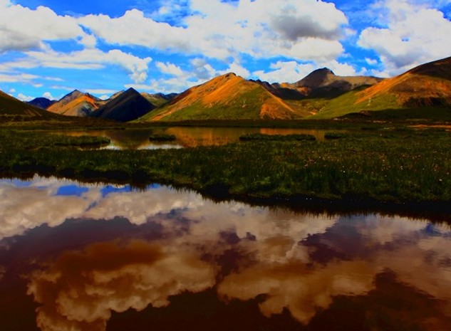 思金拉措,藏語即:具有威力的神湖,當?shù)厝罕姺Q為“財主百龍之王”居住的神湖。位于墨竹工卡縣日多鄉(xiāng)東南邊,距川藏公路(318國道)約6公里,距縣城66公里,距拉薩市區(qū)124公里,海拔4500米。地形猶如聚寶盤,四周群峰簇擁。藥材植物就多達幾十種,其中有:雪蓮花、金腰子、冬蟲夏草、黃連花等珍貴的上等藥材。山間隨處可見雪雞、雉鶉、巖羊、鹿、高山嶺羊、香獐等,有時還會看見狼、馬熊、豹等野獸。