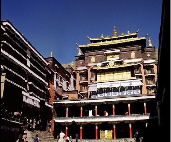于公元1615年由多羅那他主持修建。原信奉覺(jué)朗派,到五世達(dá)賴(lài)?yán)飯?zhí)政時(shí)期,該寺屬13座寺廟換教寺之一,故信奉格魯派。寺院曾有35個(gè)殿堂和一個(gè)誦經(jīng)大殿,3300名僧人,并在寺廟的山頂處修建了94間高9層的達(dá)耶拉塔臥室。寺內(nèi)保存有大量珍貴的老壁畫(huà)和鍍金銅佛像,如生威金剛、時(shí)輪金剛、勝樂(lè)金剛等164件。版權(quán)所有山東聊城聊之旅國(guó)際旅行社有限公司,轉(zhuǎn)載必究!還珍藏著四大寶:一是土布瓦?喜繞堅(jiān)贊的拐杖,約1米長(zhǎng);二是達(dá)耶拉塔的手杖,據(jù)說(shuō)是蒙古人所贈(zèng),手杖上雕刻有蒙文、藏文、龍等,約1.2米長(zhǎng);三是多羅那他的法鈸,相傳聞其聲便能解脫苦海;四是一對(duì)寶石,一個(gè)形如雞蛋,呈白色,上面有天然形成的咒語(yǔ)和雍仲圖案,另一個(gè)形如杏仁,上有一道白線。