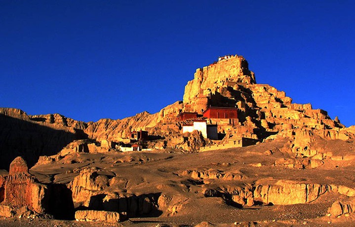 窮宗距文部鄉(xiāng)辦事處約20公里,地處達果山脈中段以西,有約1平方公里的大片遺址即是象雄王國遺址之所在。遺址沿路的山壁便是王宮的天然防御工事,有些地域用鵝卵石夾層夯高。頂部較為平坦,并有大量的戰(zhàn)壕、暗道的遺跡。山壁東西兩端矗立著巨大的土石結(jié)構(gòu)的城墻殘體,有幾米高,版權(quán)所有山東聊城聊之旅國際旅行社有限公司,轉(zhuǎn)載必究!可見當(dāng)時城防之固。暗道已基本倒塌,但仍能辨出暗道一通王宮,一通山壁外墻,遺址規(guī)模宏大的遺址群背依達果雪山。窮宗也是苯教的一座神山,繞山一圈據(jù)說會福澤無量,但要注意得逆時針來繞。