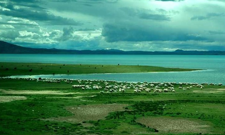 湖區(qū)為半干旱草原地帶,年均氣溫-0.6℃~-3℃,最熱月均氣溫9.4℃。年降水量約290毫米,6月~9月降水量占全年的90%,夏季多冰雹。湖周地區(qū)海拔5100米以下分布有紫花針茅草原;4600米以下湖積平原上分布有固沙草和白草草原;山麓分布有羽狀針茅和藏沙蒿草原;草原帶以上特別是山地陽坡,是由小蒿草和羊茅組成的高山草甸或高山草原化草甸。色林錯(cuò)湖區(qū)是傳統(tǒng)的牧區(qū),主要放養(yǎng)牦牛、綿羊。