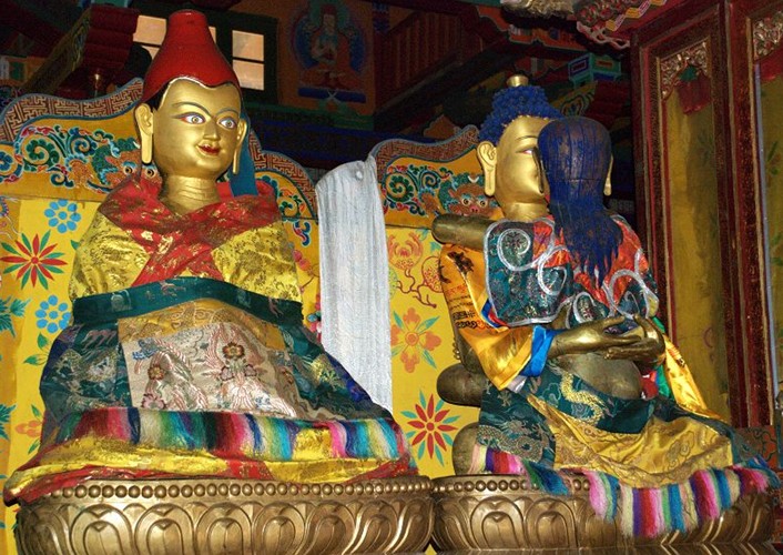 昌珠寺位于乃東縣昌珠鎮(zhèn)雅礱河東南岸,屬格魯派寺院。建于松贊干布時期,據(jù)說文成公主曾在該寺駐足修行。蓮花生和米拉日巴等高僧都在昌珠寺周圍修行,其修行地遺址仍存,是佛教信徒朝拜的圣地。珍珠唐卡為昌珠寺鎮(zhèn)寺之寶,所畫的是堅期木尼額松像(觀世音菩薩憩息圖)。整個唐卡長2米,寬1.2米,耗費珍珠29026顆,另外鑲嵌有鉆石和各色寶石。國務院于1961年3月4日正式公布,昌珠寺為全國第一批重點文物保護單位之一。