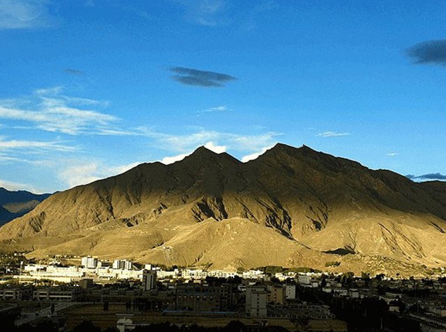 位于雅魯藏布江南側(cè),緊臨澤當(dāng)。是西藏著名的神山之一。貢布日山有三峰,第一峰是央嘎烏孜,第二峰是森木烏孜,第三峰是竹康孜,三座山峰上有洞穴相連。 貢布日山是座神山,與遍布西藏的其他神山不同,貢布日山之神不在于它是山神的居住之地,而在于其預(yù)知未來的靈異,在這座山上可以遍知一切。據(jù)說它由四們神靈合力托著,東面馬王,西面神像,北面孔雀,南面靈龜,他們把山托在空中,離天一大截,離地一大截,因此,只有誠心與有福氣的人才能登上此山,看到仙境,從中預(yù)料自己人生的順逆禍福。當(dāng)年獼猴變?nèi)说哪信鹘蔷妥≡谏緸踝魏脱敫聻踝?,竹康孜則是菩賢菩薩修行的地方,猴王和羅剎女就是在菩賢的主持下成的親。貢布日山前有一大片壩子,傳說是群猴玩耍嬉戲的地方,因而該地得名澤當(dāng)(玩耍的壩子)。此山目前尚有大量寺院分布。